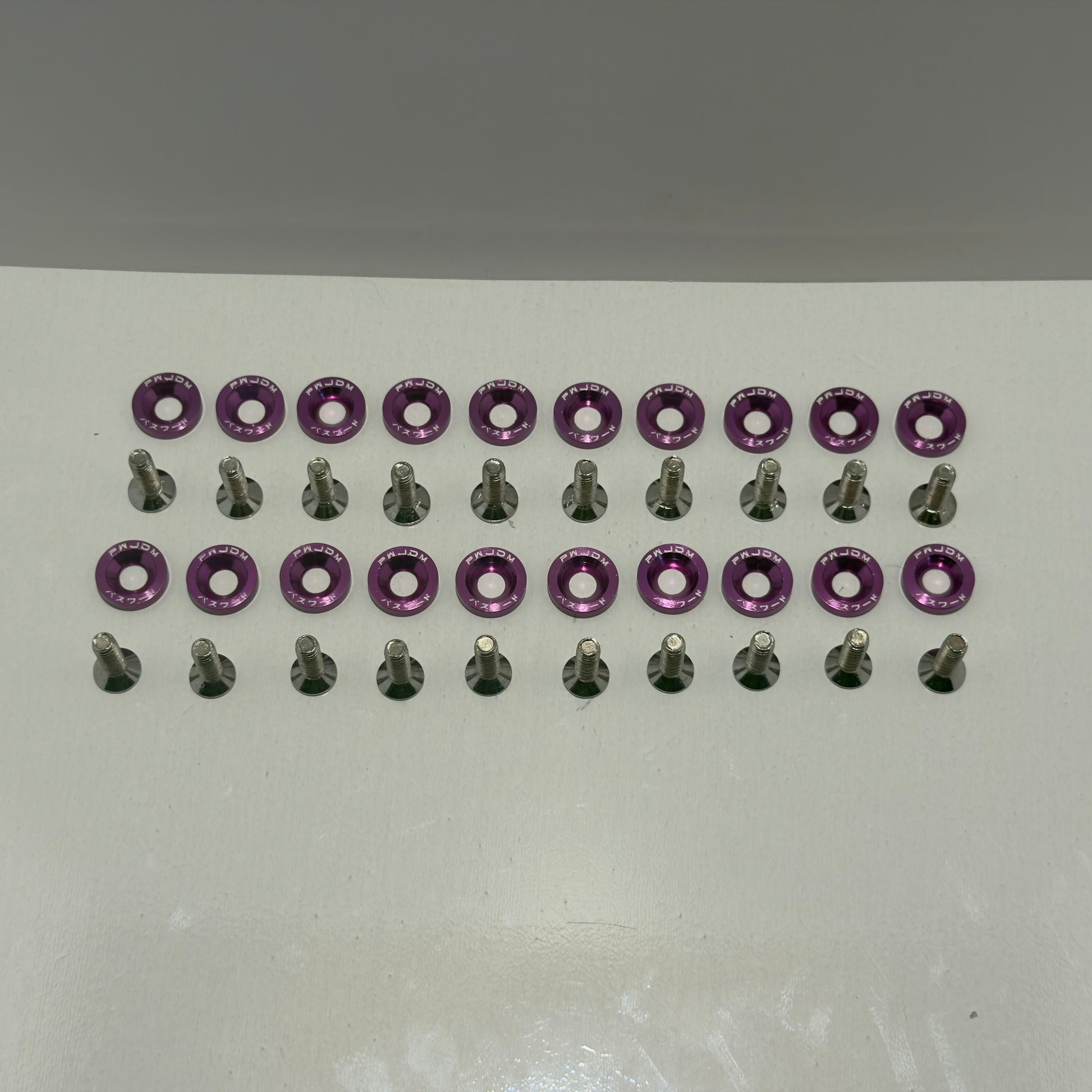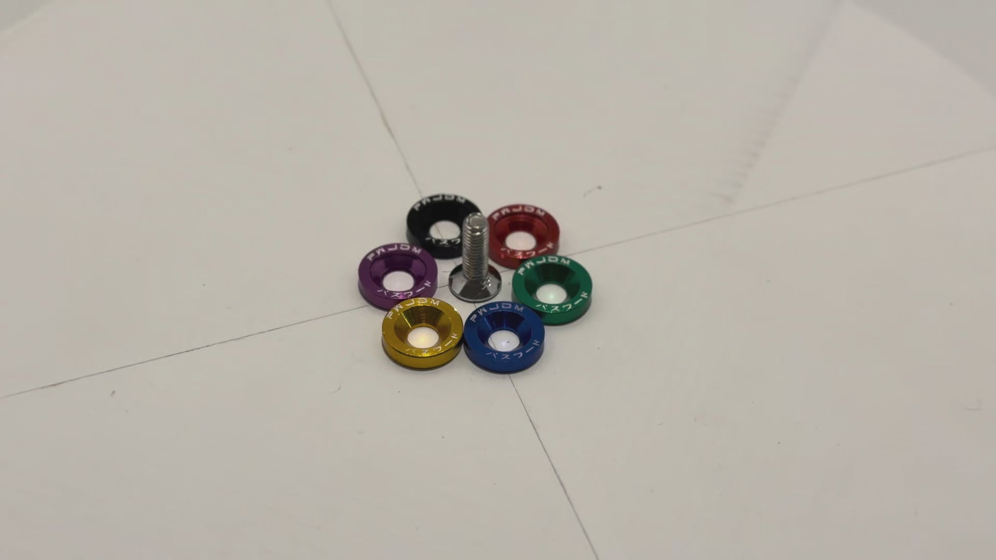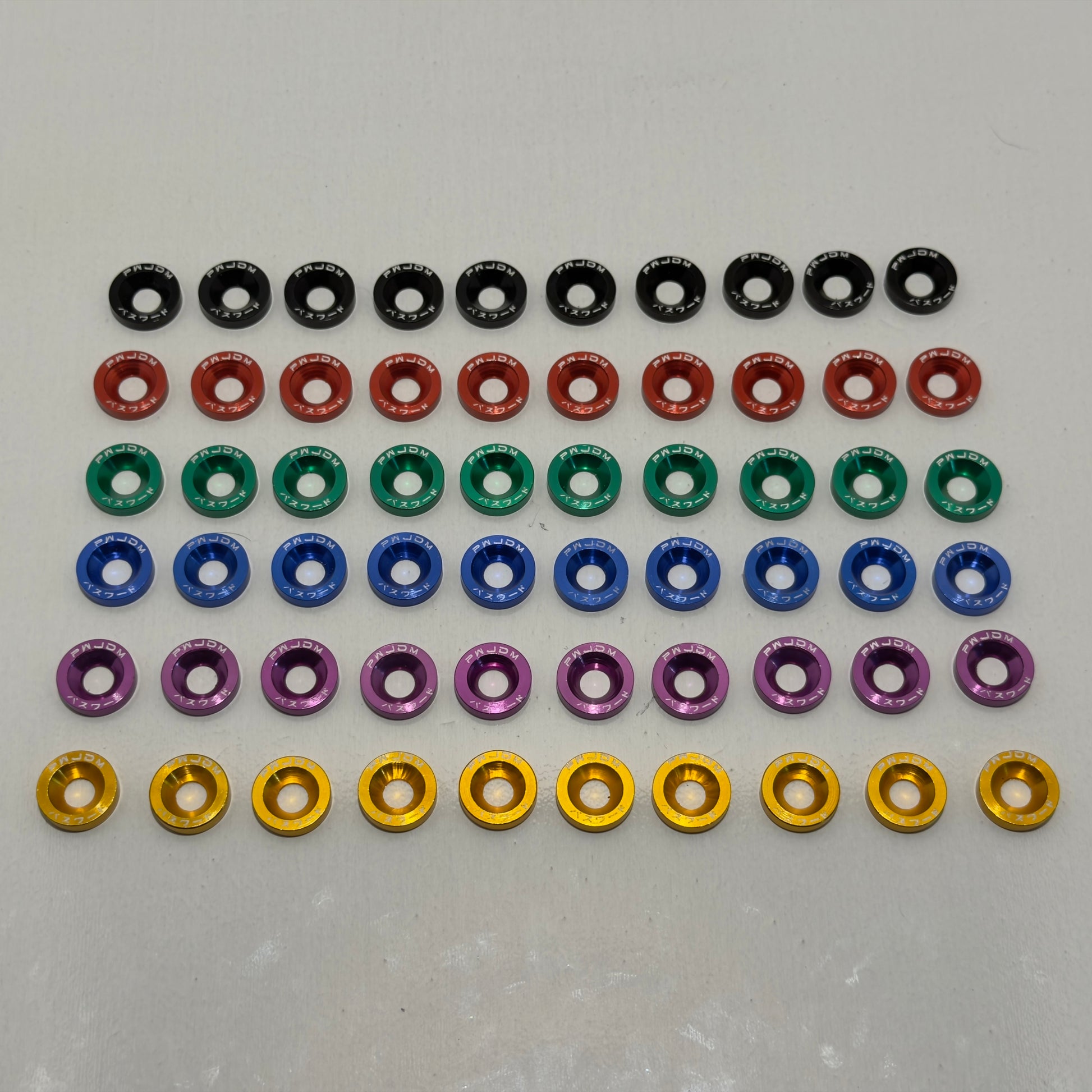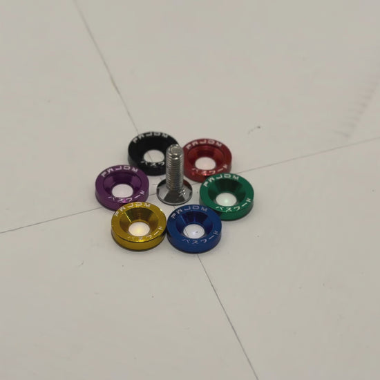 Add that last finishing touch to your engine bay with these all new Universal dress up washers! Offered in anodized black, red, green, blue, purple and Gold, these dress up washers feature the Password:JDM Kenji logo. All dress up washers are crafted from aircraft grade aluminum and include long lasting stainless steel bolts.